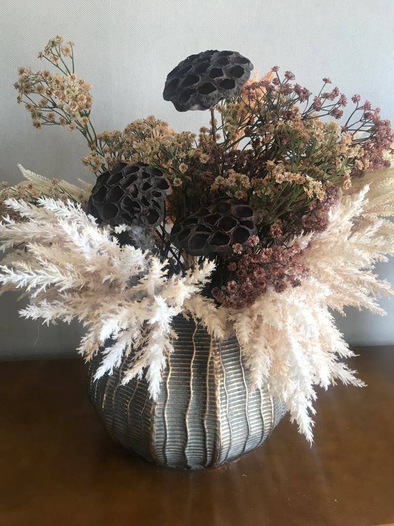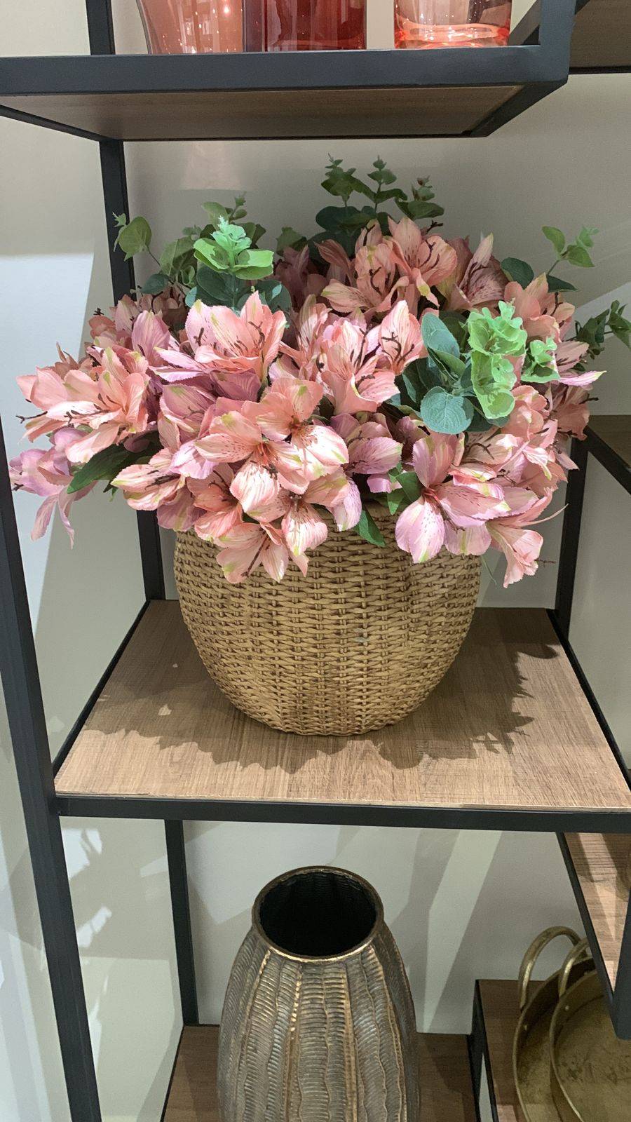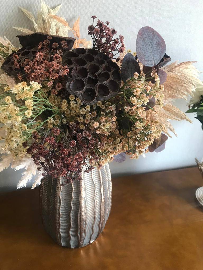 ARRANJO PRONTO VASO DE METAL RUSTICO BRONZE G