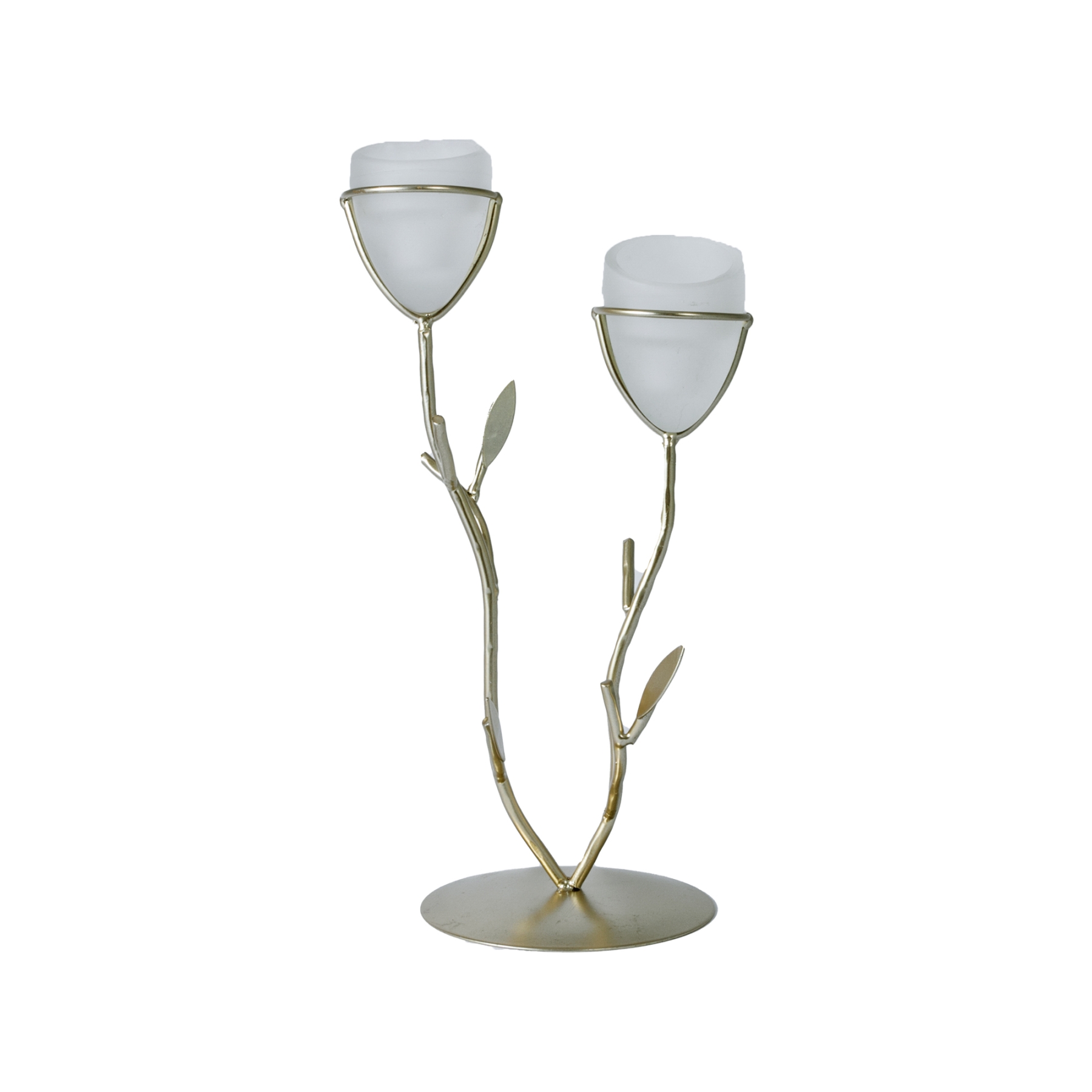 CASTIÇAL DUPLO DOURADO ENVELHECIDO