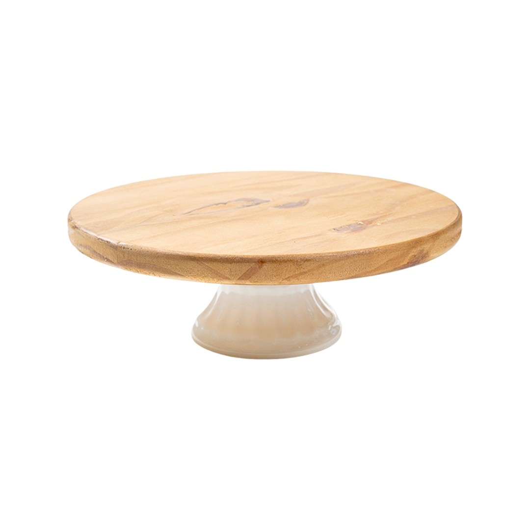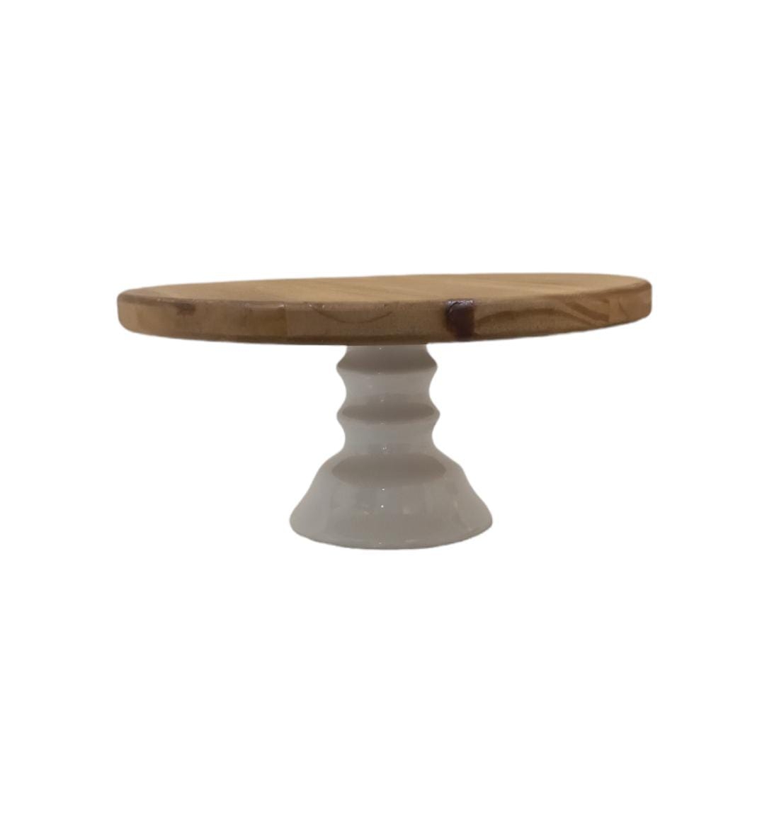 BOLEIRA MADEIRA PÉ CERAMICA BRANCO ALTO